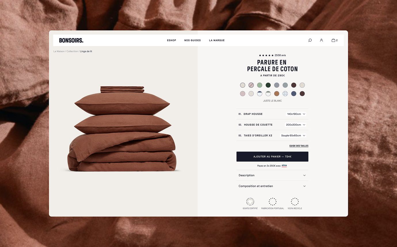 Bonsoirs set out to elevate its positioning within the world of premium home textiles, refining how quality, comfort, and craftsmanship are perceived across every touchpoint. The ambition was not simply to update the brand, but to build a coherent and enduring universe—one capable of expressing material excellence with clarity, restraint, and confidence. Numbered partnered with Bonsoirs to reimagine the brand holistically, shaping its identity across rebranding, packaging, photography, and digital experience. Each layer was designed to work in unison, ensuring consistency between physical products, visual language, and digital expression.